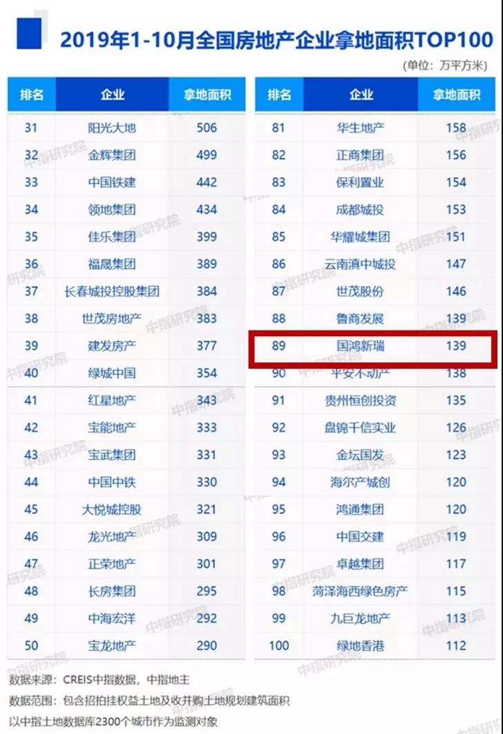2019年10月31日“中指研究院”权威发布《2019年1-10月中国房地产企业销售业绩TOP100排行榜》,国产精品欧美一区二区三区激情集团凭借权益销售面积125万㎡位列百强98位;同日“中指研究院”发布《2019年1-10月中国房地产拿地金额TOP100排行榜》、《2019年1-10月中国房地产拿地面积TOP100排行榜》国产精品欧美一区二区三区激情集团以销售拿地金额65亿元、拿地面积139万方,分列全国拿地金额榜99位、拿地面积榜89位,成绩喜人。